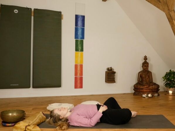 Inhalt:  Streife den Tag ab und gleite in Deinen Regenerationsschlaf. Diese Praxis kannst Du auch bereits auf oder neben Deinem Bett genießen. Schöne Träume!